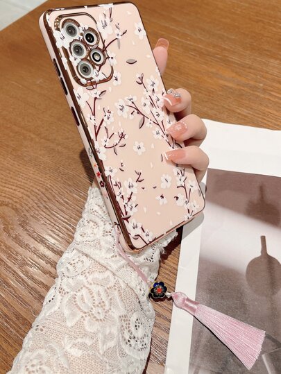 Pink 1pc 6d Electroplated Tpu Patterned Phone Case And 1pc Tassel Hanging Rope, Compatible With Iphone Samsung Xiaomi Huawei Oppo Phones Compatible With IPhone15/15Plus/15Pro/15Promax - Multicolor - View 1