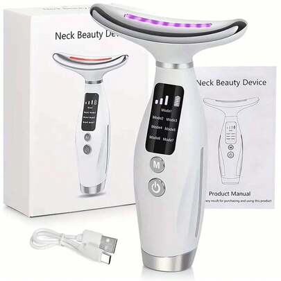 1 máy mát xa mặt và cổ cầm tay tần số cao 7 màu, thiết bị làm đẹp da, pin lithium sạc USB, dụng cụ mát xa spa tại nhà, có thể làm săn chắc và thư giãn da.