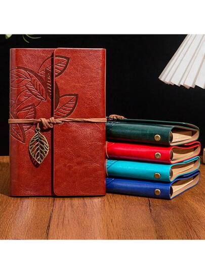 1pc 75-Page Vintage Leather Notebook, Matte Finish And Blank Pages - Hardcover Writing Journal With Metal Clasp And Spiral Binding, Halloween Gift, Christmas Gift - Multicolor - View 1