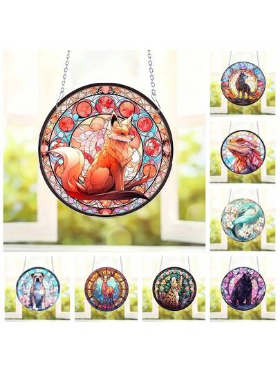 1pc 8-Inch Creative Round Window Style Wall Decoration, Colorful Animal Print, Made Of Acrylic, Suitable For Home, Party And Event Decorations - Multicolor-1 - View 1