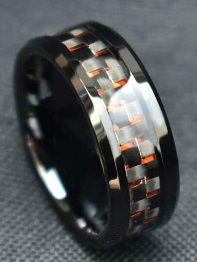 1pc 8mm Men Rings Stainless Steel Classic Ring Black Red Jewelry Wedding Bands Gift Accessories - Red - View 1