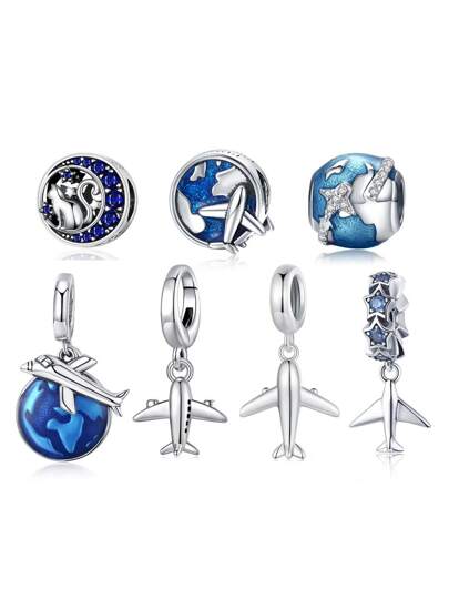 1pc 925 Sterling Silver Airplane Pendant, Suitable For Snake Chain Bracelet DIY, Elegant Beads Jewelry - Silver - View 7