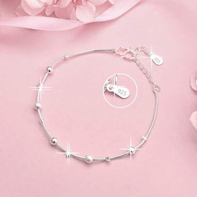 1pc 925 Sterling Silver Pendant, Minimalist Matte Bead Chain, Unisex Fashion Jewelry, Suitable For Wedding, Party, Christmas, Birthday Gift - Silver 6 - View 1