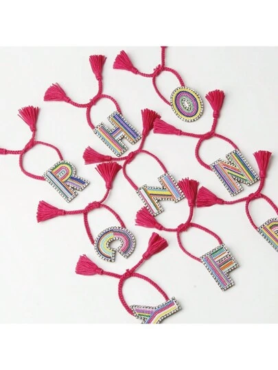 1pc A-Z Embroidered Tassel Bracelet, Women's Fashionable Braided Adjustable Charm Wristband, Suitable For Festivals And Parties Decoration - Letter Bracelet - View 1