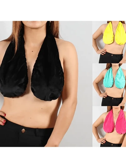 1pc Absorbent & Breathable Towel Bra, Towel Bra Neck Wrap Suitable For Beach, Camping, Sports, Swimming, Fitness, Yoga, Bathroom, Sports And Daily Wear. The Towel Hangs Around The Neck And Wraps Around The Chest, With Ample Chest Space. Can Be Used As A Sports Bra, Sports Inner Wear. Double-Sided Plush Super Soft And Warm, No Shoulder Strap Neck Wrap Style, Women's Personal Care Item - Black - View 2