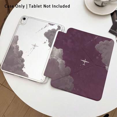 1pc Acrylic Crystal Airplane Painted Tablet Protective Case With Stand, Compatible With Samsung, Honor, Apple And Other Brands, Foldable Anti-Bending, Silicone Reinforced Corners, Auto Wake/Sleep Function, Built-In Pen Slot, Multi-Angle Foldable Stand - Perfect Daily Protection, Great Gift For Holidays - Multicolor - View 1
