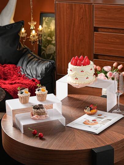 1pc Acrylic Dessert Cake Display Stand, Multi-Tier Decorative Rack, Reusable - White - 5mm Thick Stepped - View 1