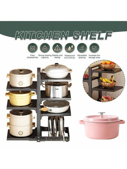 1pc Adjustable Heavy Duty Kitchen Organizer - Large Capacity Pots And Pans Rack, Multipurpose Heavy Duty Pots And Pans Storage Rack Under Cabinet, 7 Layers Adjustable Pan Storage Rack For Kitchen Cabinet Organizer And Storage, Kitchen Organizer - Black - View 1