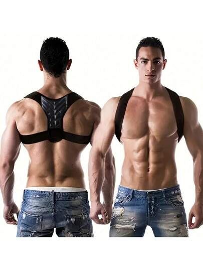 1pc Adjustable Posture Back Brace For Men And Women - Breathable Material, Durable Buckle, Stylish Patterns For Comfortable Back Support - Black - View 1