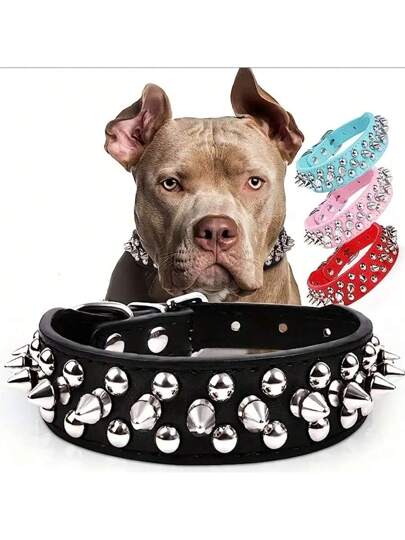 1pc Anti-Bite Rivet PU Leather Pet Collar, Adjustable Size, Suitable For Small & Medium-Sized Dogs For Travel - Multicolor - View 1