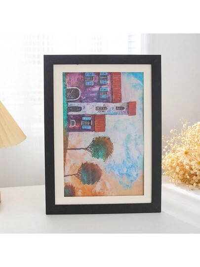 1pc Art Frames, Solid Wood Photo Frame, A4 Oil Painting Decoration Storage Box, Painting Photo Frame, Back To School - Black - View 1