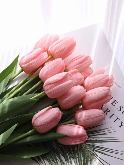 1pc Tulip Artificial Flower With Realistic Touch And Moisturizing Feature For Living Room And Dining Table Decoration, Wedding Bouquet Easter - Dusty Pink - View 7