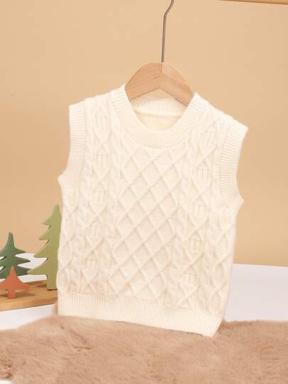 1pc Baby Boy/Girl Knitted Sweater Vest, Textured Knit Design, Casual & Cute, Suitable For Spring/Autumn - Beige - View 1