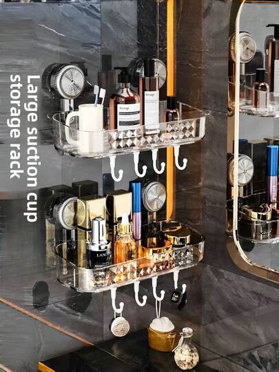 1pc Bathroom Kitchen No-Drill Storage Rack, Transparent Gray Modern Style Wall-Mounted Rack, Removable Suction Cup Design, Suitable For Bottles And Jars Of Various Sizes,For Holiday Beach, Bathroom Collection, Bedroom Collection, Large Capacity - Multicolor - View 1