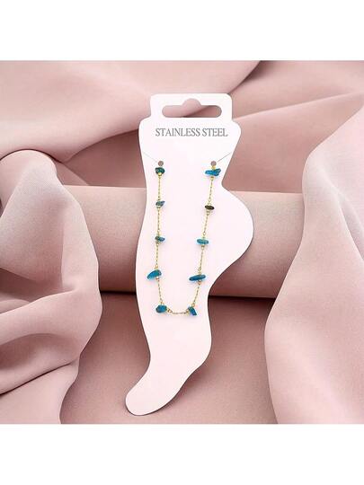 1pc Best-Seller Fashionable Unisex Titanium Steel Anklet With Natural Turquoise Stone Decor - Blue - View 1