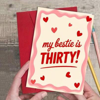 1 Thiệp chúc mừng sinh nhật kèm phong bì, phù hợp cho nữ, họa tiết trái tim màu hồng và dòng chữ "Chúc mừng sinh nhật lần thứ 30 người bạn thân nhất của tôi", món quà kỷ niệm sinh nhật lần thứ 30.