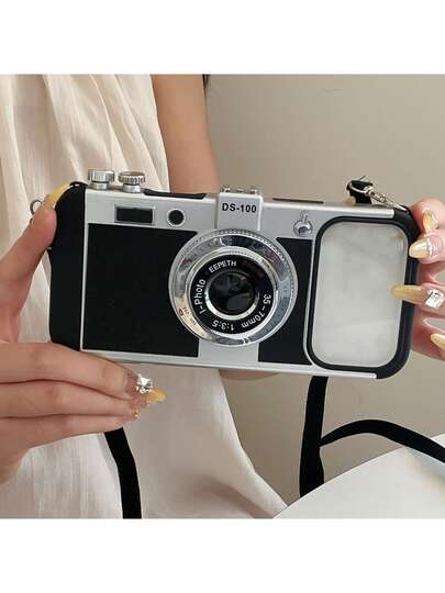 1pc Vintage 3D Camera Phone Case Compatible With Apple 16/16 Pro/16 Pro Max/17 Pro Max, S24 Ultra/S25 Ultra/S25/S25 Plus, Shockproof Camera Phone Cover With Detachable Strap, TPU+PC Material - Black - View 1