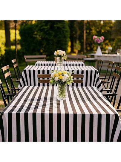 1pc Black And White Striped Tablecloth, Washable And Colorfast, Table Decor, Home Goods, Party, Christmas, New Year, Wholesale And Retail In Multiple Sizes - Black and White - View 1