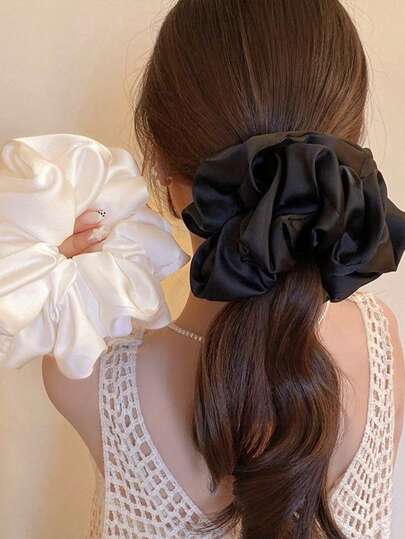 1pc Black Large Style Satin Scrunchies For Women Elastic Silk Scrunchies For Hair Sleep Hair Ties No Damage Suitable For Multiple Occasions Hair Accessories, Ponytail Holders, Scrunchy Hair Ties, Washing Face - Multicolor - View 1