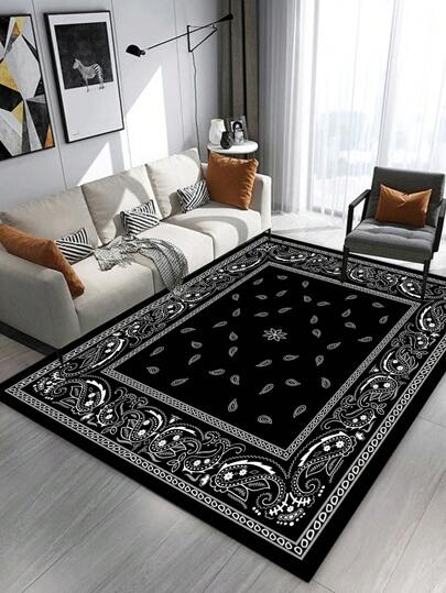 1pc Black Paisley Pattern Living Room Large Carpet, Modern Minimalist Style, 800g/Sqm, 5mm Thickness, Soft & Comfortable Touch, Non-Slip Backing, Suitable For Lobby, Bedroom, Living Room, Kitchen, Dining Room, Office, Room Decor And Doormat, Holiday Celebration - Black - View 1