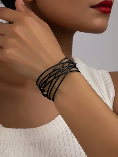 1pc Black Summer Fashionable Simple Linear Cuff Bracelet For Casual Style - Black - View 1