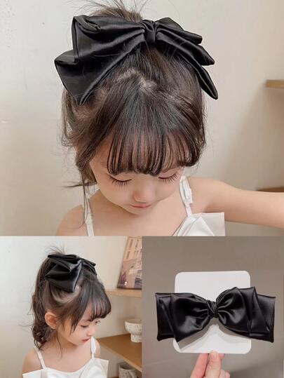 1pc Black Triple Layer Ribbon Bow Hair Clip For Girls, Suitable For Festival - Black - View 1