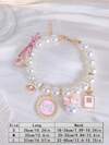 Pink Bow Pearl Necklace, Cute Pet Collar Accessory For Cats And Dogs