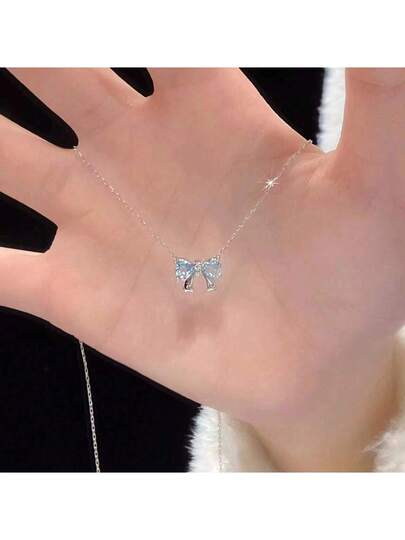 1pc Blue Butterfly Collarbone Necklace Sweet Girl Daily Street Photo Holiday Gift - Bow - View 1