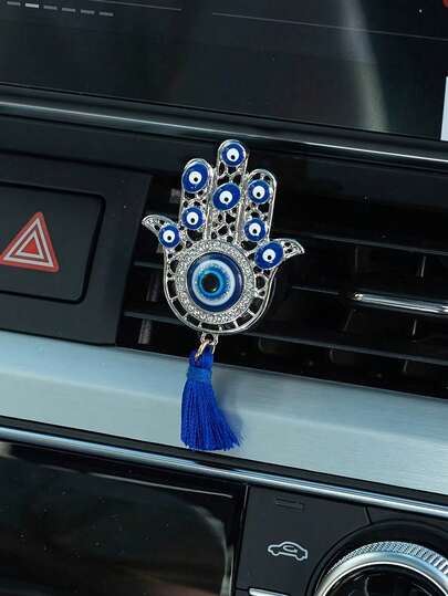 1pc Blue Evil Eye Car Air Vent Decor, Palm Shaped With Tassel, Car Interior Accessory, No Fragrance, Exquisite Alloy Material, Unisex Car Vent Decoration, Gift For Drivers - Evil Eye - View 1