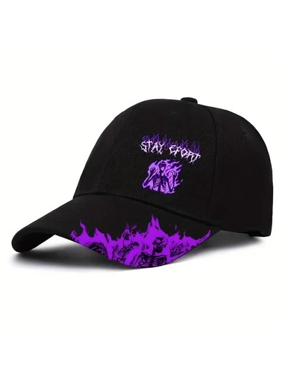 1pc Blue Flame Skull Print Unisex Baseball Cap, Streetwear Fashion Outdoor Sports Curved Brim Adjustable Hat - Multicolor - View 1
