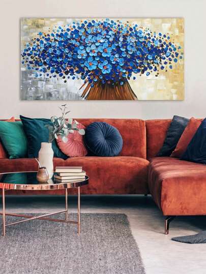 1pc Blue Flowers Oil Painting Wall Art Poster,HD Picture Printing,Waterproof Canvas Wall Art, Canvas Wall Poster,Canvas Art For,Modern Abstract Plant Wall Painting,Very Suitable Living Room Bedroom And Home Decor Wall Art ,Exquisite Gifts For Everyone,No Frame - Blue - View 1