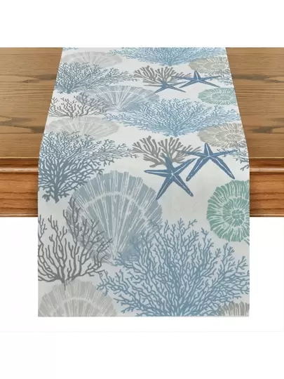 1pc Blue Ocean Coral Starfish Design Polyester Tablecloth, Wedding Decoration, Modern Catering Table Mat, Kitchen Dining Table Decor, Room Decoration - Baby Blue - View 8