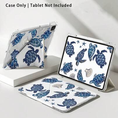 1pc Blue Sea Turtle Acrylic Crystal Tablet Protective Case With Stand, Suitable For Samsung, Honor, Apple And Other Brands, Foldable Anti-Bending, Silicone Reinforced Corners, Auto Wake/Sleep Function, Built-In Pen Slot, Multi-Angle Foldable Stand - Perfect Daily Protection, Ideal Gift - Multicolor - View 1