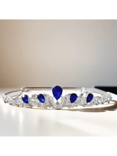 1pc Blue Waterdrop Shaped Crown Headband, Suitable For Wedding, Birthday Party & Celebration, Fashionable Prom Queen Crown Accessory For Ladies, Nice Gift For Girlfriend Elegant Royal Tiaras - Blue - View 1