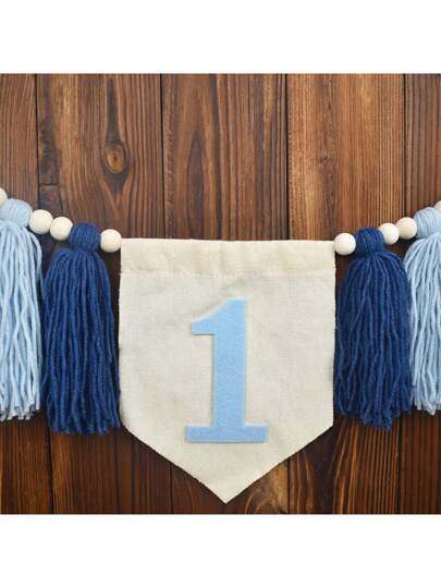 1pc Blue & White Macrame High Chair Banner For 1st Birthday With Boho Handmade Beaded Tassel Garland, 1st Birthday Party Decoration For Nursery, Classroom, Bedroom, And Holiday Celebration,Christmas - Multicolor - View 1