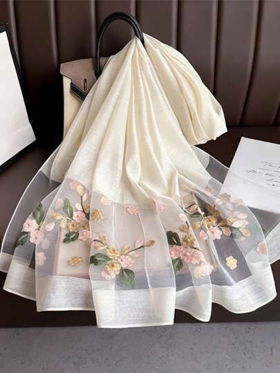 1pc Bohemian Elegant & Luxurious Floral Embroidery Scarf, Casual Business Shawl, Women Hijab, Suitable For Daily Wear For Dress - A - View 1