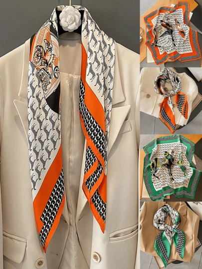 1pc Boho Style 70s Floral Printed Square Scarf, Faux Silk Bandana, New Design Versatile Neck Scarves, Headband, Hair Accessories, Fashion Shawl - Multicolor - View 5