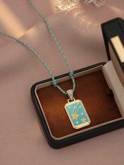 1pc Boho Tarot Card Demon Eye Braided Adjustable Necklace Pendant Suitable For Daily Wear, Travel, Holiday Gift - Blue Star - View 1