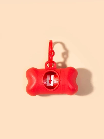 1pc Bone Design Pet Poopbag Dispenser & 2rolls Pet Poopbag - Red - View 9