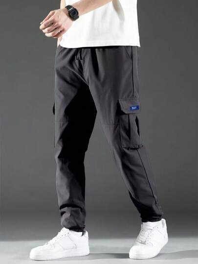 1pc Boyfriend Style Men Cargo Pants Casual Loose Harem Trousers, Spring Wide Leg Drawstring Waist Pants, Multipurpose For 2024 Spring Summer - Dark Grey - View 7