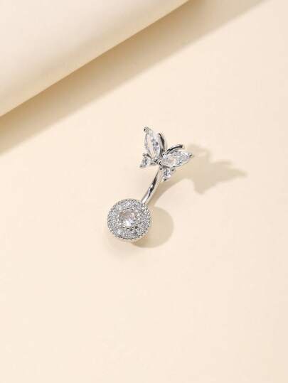 1pc Butterfly Design Belly Button Ring, Fashion Navel Piercing Jewelry For Women - Silver - View 1