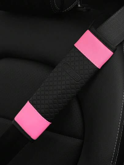 1pc Car Seat Belt Shoulder Pad Cover, Pu Leather Sport Inspired Design, Interior Accessory - Pink - View 1