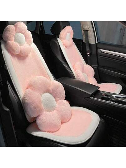 1pc Car Seat Cushion Powder Long Plush Cute Car Universal Seat Cushion Warm Anti Slip Comfortable Car Seat Protective Cover Can Also Be Used As A Chair Cushion,Car Accessories Women - Pink - View 1