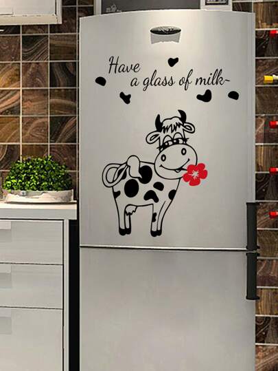1pc Cartoon Cow & Slogan Graphic Wall Sticker - Multicolor - View 1