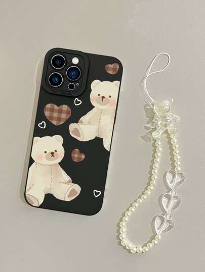 1pc Cartoon Dashed Bear Detachable Lanyard Phone Case, Compatible With Iphone 15 Pro Max, Xiaomi, Samsung All-inclusive Painted Protective Casing - Multicolor - View 1