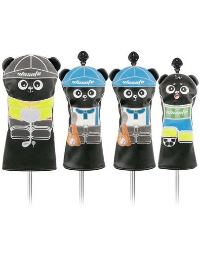 1pc Cartoon Design PU Golf Club Cover - Black - View 1