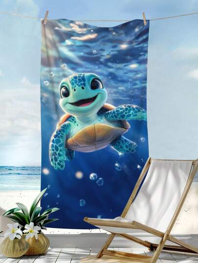 1pc Cartoon Sea Turtle Pattern Microfiber Absorbent Towel For Swimming, Beach, Travel, Outdoor Summer Travel, Vacation Holiday Bathroom Decor Beach Essentials - Multicolor - View 1