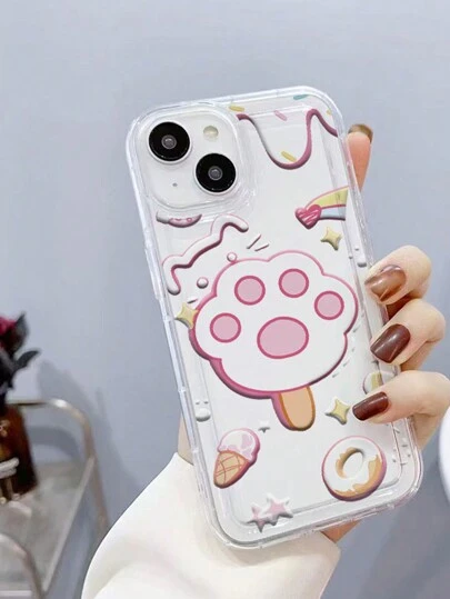 1pc Cat Paw Ice Cream Shaped Shockproof Silicone Case Compatible With Iphone 14 - Multicolor - View 1