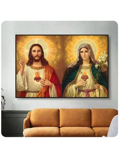 1pc Catholic Fresco Christianity Mural Mary And Jesus Sacred Heart Canvas Painting Prints Poster Wall Art Picture Home Decor, Modern Minimalist Style Print, Living Room And Room Decoration, Bathroom Decoration, Ideal Gift, No Frame - Multicolor - View 8