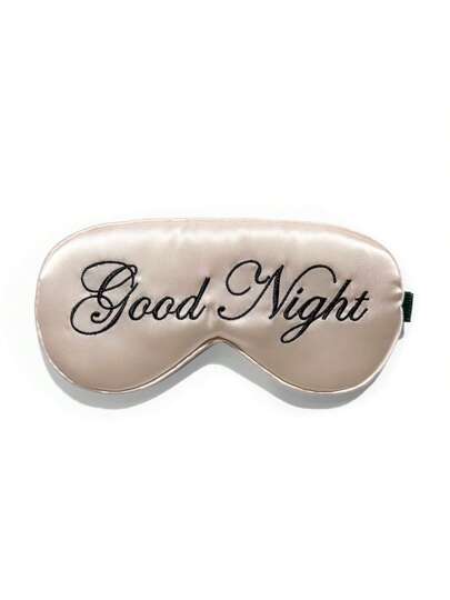 1pc Champagne Color "Good Night" Embroidery Logo Lightweight Polyester Fabric Eye Mask, Sleep Accessory - Champagne - View 1